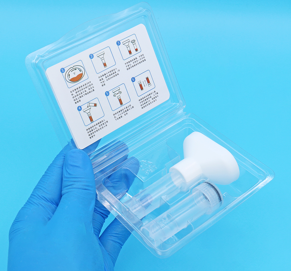 采集漏斗与收集管采用医疗级聚丙烯(PP)注塑,耐化学腐蚀、抗冲击性强、透明度高,便于观察样本量;漏斗设计贴合人体口型,操作简便,减少样本外溢风险。